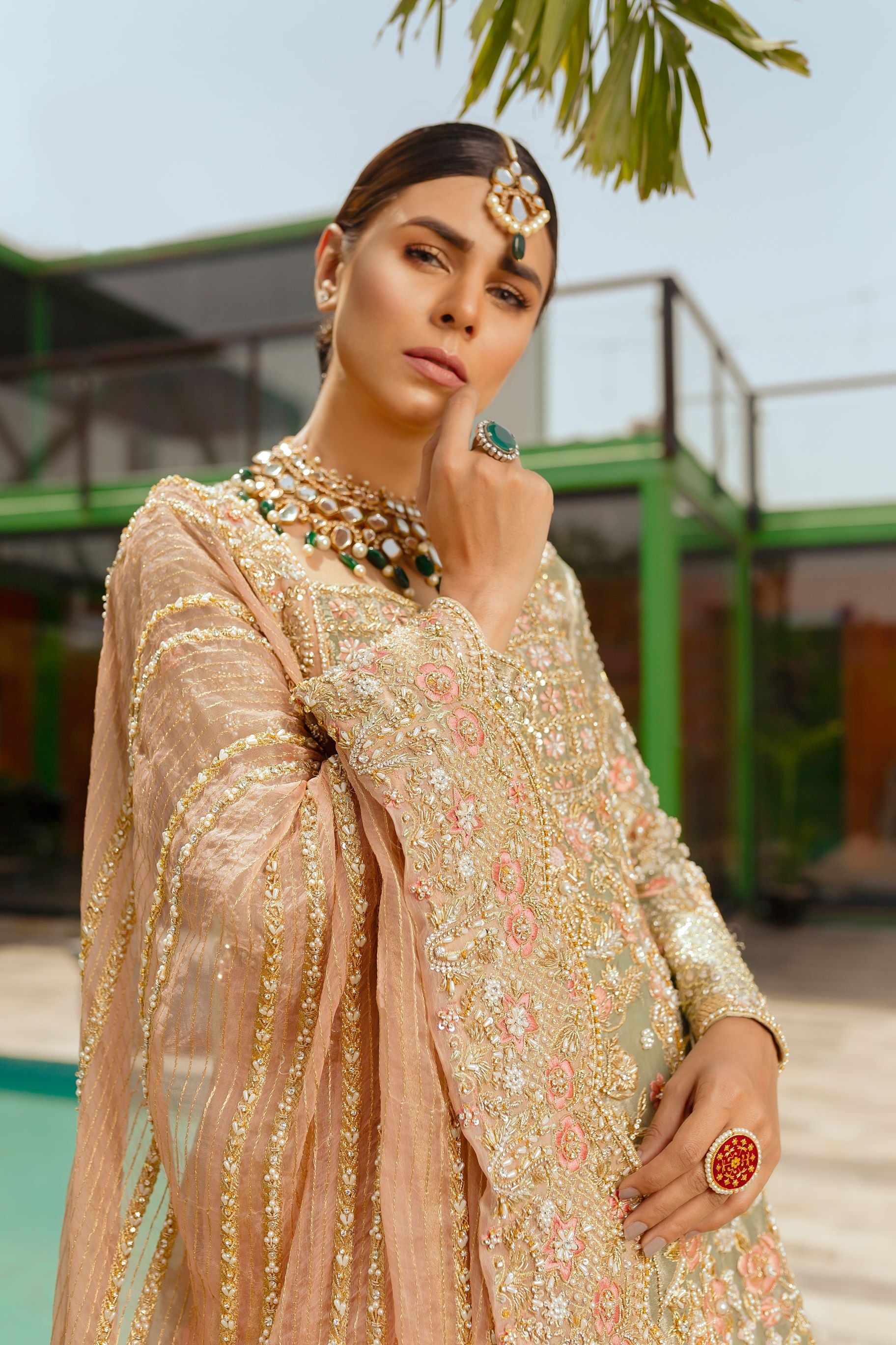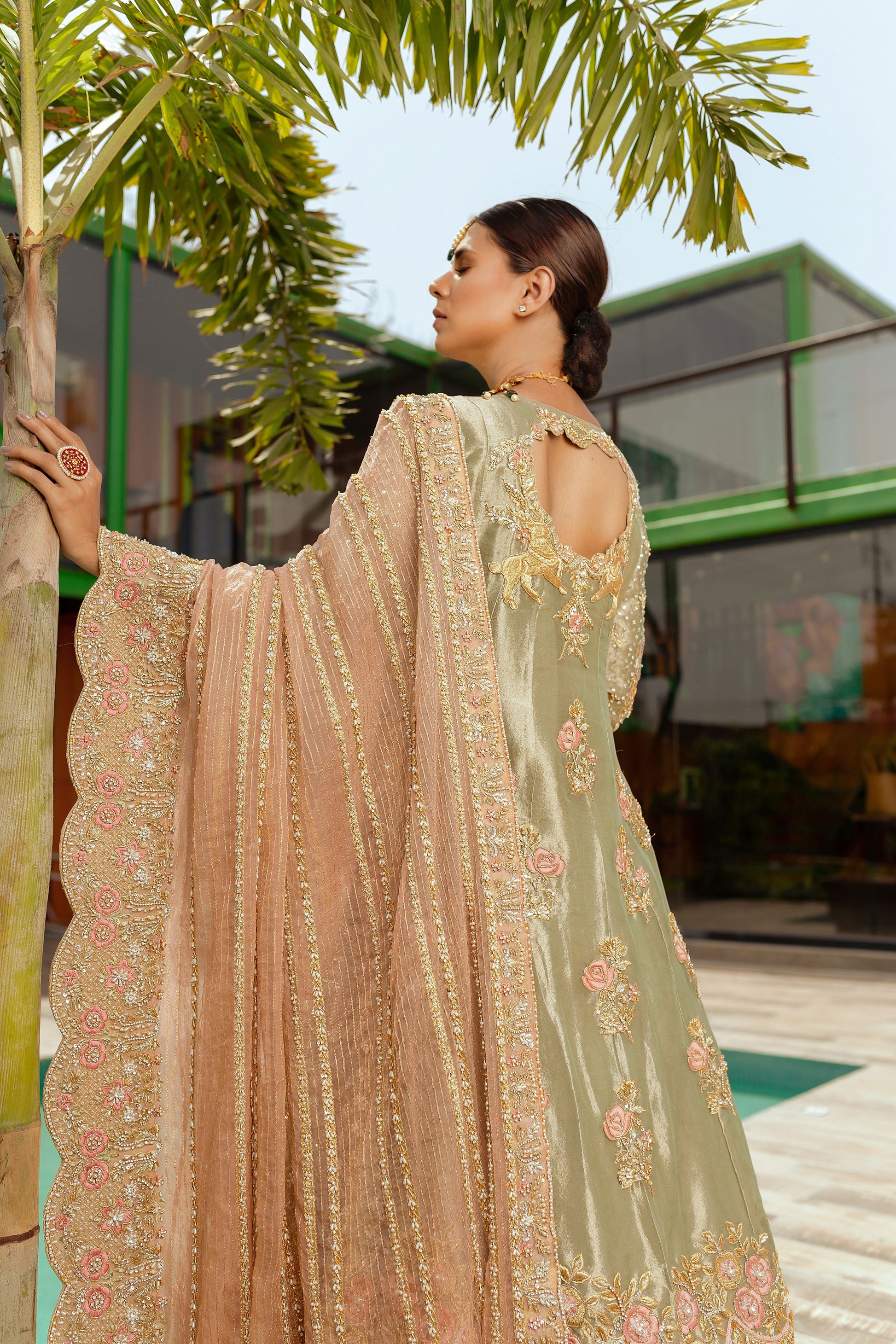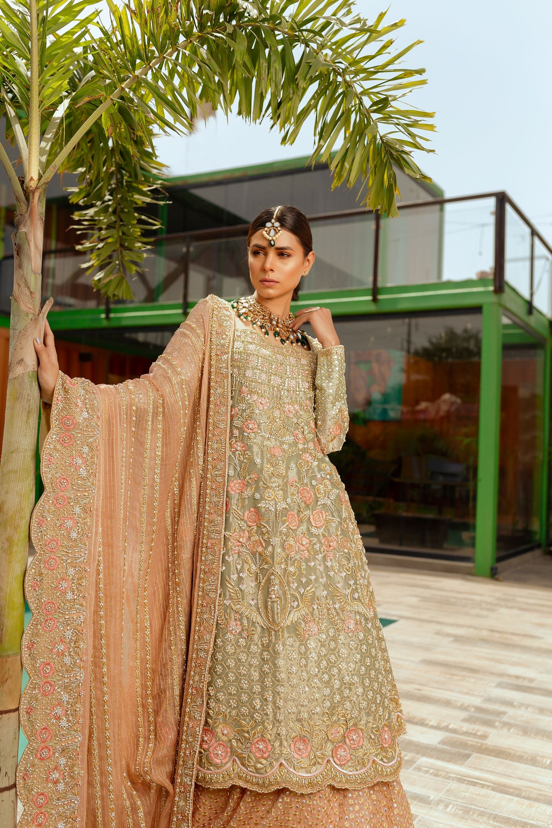 A pistachio and peach number. Worked with kora, dabka, resham, sitara etc.