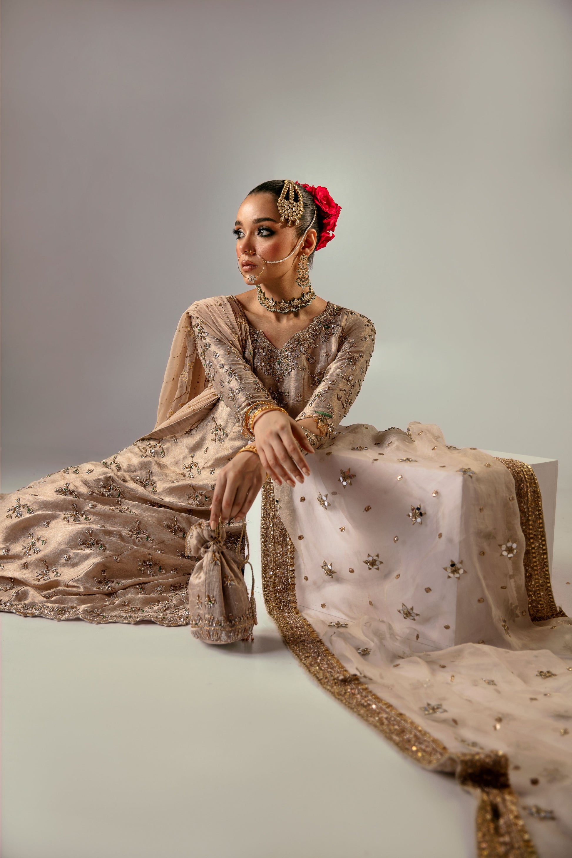 Fabric: ( Tissue/Tissue Brocade/ Jamawar/ Chiffon/ Organza )